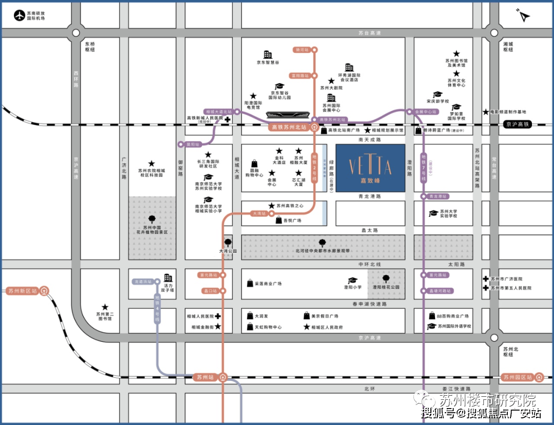 定位国际化城区、姑苏新核心的高铁新城,吾悦广场、购物核心、朗诗湛蓝糊口邻里核心、芯光里贸易街、夸姣荟等商圈环伺?